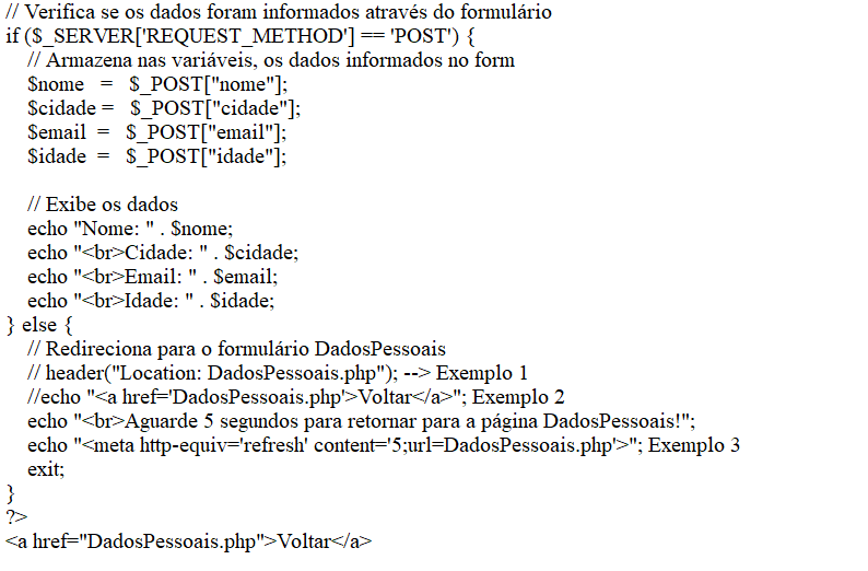 - Redirecionar para outra página